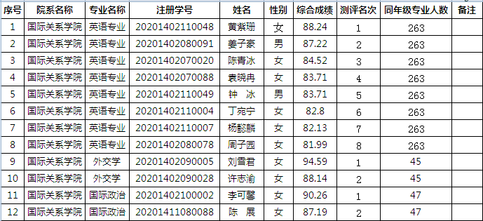 根据《四川外国语大学推荐优秀应届本科毕业生免试攻读硕士学位研究生工作实施办法》[川外教(2017)4号]和《四川外国语大学关于教授联名推荐“学术特长生”免试攻读硕士学位研究生的实施办法》[川外教(2017)5号],以及《关于开展推荐优秀应届本科毕业生2018届免试攻读硕士研究生的通知》[川外教务处(2017)66号]的要求,在学生本人申请、公开评选的基础上,学院推免生遴选工作小组本着公开、公平、公正的原则,严格按推荐条件择优确定初选名单。现将我院2018届免试攻读硕士学位研究生拟推荐名单公示如下。