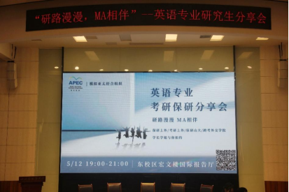 同时,本学期根据实际需要,调整了一部分教学活动。比如基于MA(模拟APEC)社团对英语能力培养的重视,结合同学保研考研的实际需要,邀请英语专业优秀学长学姐分享保研、考研的成功经验(包括跨考)。