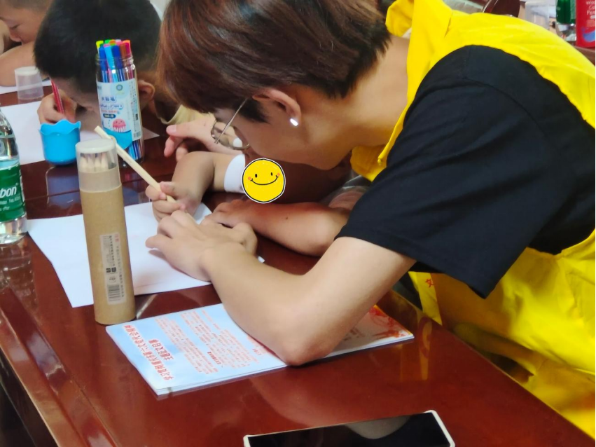 志愿者为贫困家庭儿童举办英文绘画课堂,助力乡村教育