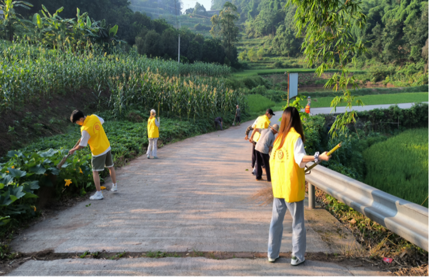志愿者们清扫乡村公路,助力乡村环保