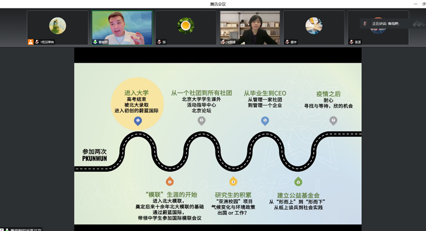 曹老师从以下三个方面开展讲座:1.学生时期个人求学与创业分享。2.从模拟联合国到联合国:在学生活动中发现生涯方向。3.国际化人才的就业路径与发展规划:以国际组织为例。在分享个人求学和创业经历中,曹老师强调要知道自己不擅长什么,有时候要比知道自己擅长什么更重要。他还介绍了自己在北大期间为北大模联制定一系列标准的经历,同时鼓励年轻学生去见见外面的世界。此外,他还从个人作为公司CEO的视角介绍了管理与领导两个概念之间的区别,建议青年学生在学习和从事社团活动中注重过程导向而不是结果导向。在从模拟联合国到联合国这一部分中,曹老师介绍了如何成为联合国的正式员工,鼓励学生从社团活动中发现生涯方向。在国际化人才的就业路径与发展规划这一部分的介绍中,曹老师为青年学生提供了四个就业方向:国家部委、非营利性社会组织、国际组织、国际非政府组织。最后,他提出国际关系专业的学生具有三大优势:1.具备更强的全球视野和理解世界与中国的能力。2.拥有较强的语言基础,并更善于与人沟通。3.拥有更强的包容性。