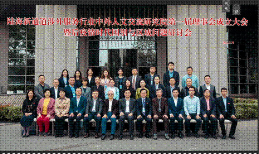 (二)2021年3月31日,陆海新通道涉外服务行业中外人文交流研究院第一届理事会成立大会成功举行。出席大会的有教育部中外人文交流中心主任杜柯伟、四川外国语大学校长董洪川、重庆市教育国际交流协会会长胡斌、重庆市教育国际交流协会秘书长乐勇、教育部中外人文交流中心机制工作二处处长陈滔伟、重庆市委外事工作委员会办公室秘书处处长冯仁勇以及重庆相关政府部门、国内外学术机构、合作企业代表共40余人。会议由四川外国语大学副校长祝朝伟主持。