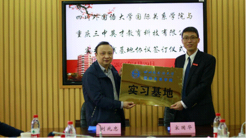 (三)2021年4月29日上午,太阳成集团tyc122ccvip与重庆三中英才教育科技有限公司共建实习实践基地签约仪式在歌乐楼A204会议室隆重举行。重庆三中英才教育科技有限公司董事长刘兆忠、党支部书记骆霏、英才学院院长阎革、品牌管理中心总监陈文坡、视频专员胡鋆飞、新师招培部主管赵慧,太阳成集团tyc122ccvip党总支书记高绍邦、副院长宋国华、吴兵等40余人出席了签约揭牌仪式。仪式由高绍邦书记主持。