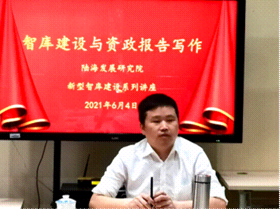 2021年6月4日,龙兴春教授受邀在博文楼实验室为研究院师生举行了主题为“智库建设与资政报告写作”的辅导讲座,陆海院新型智库建设系列活动正式开启。